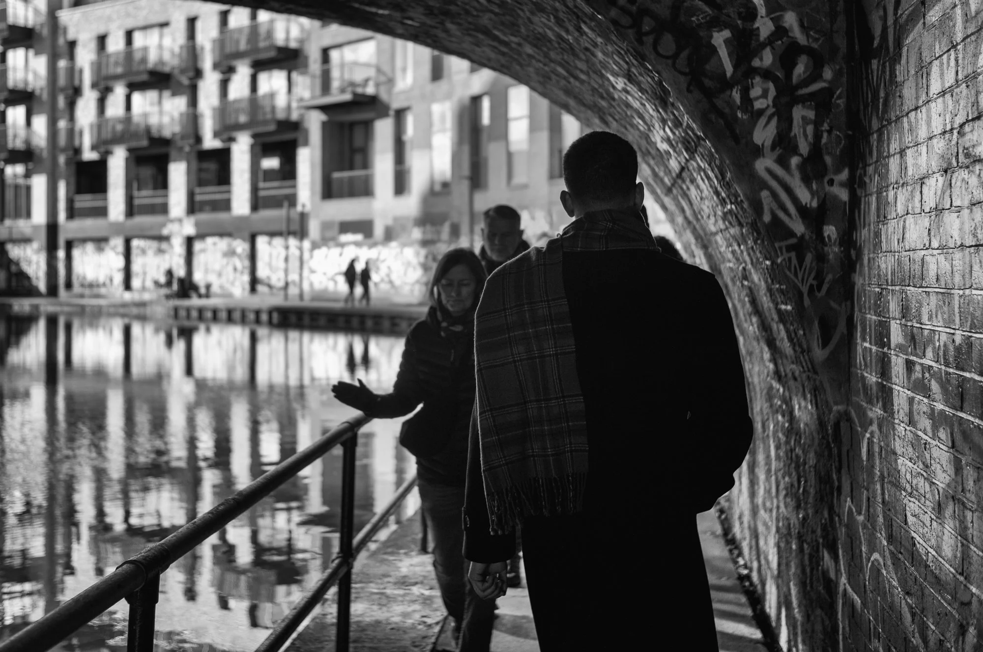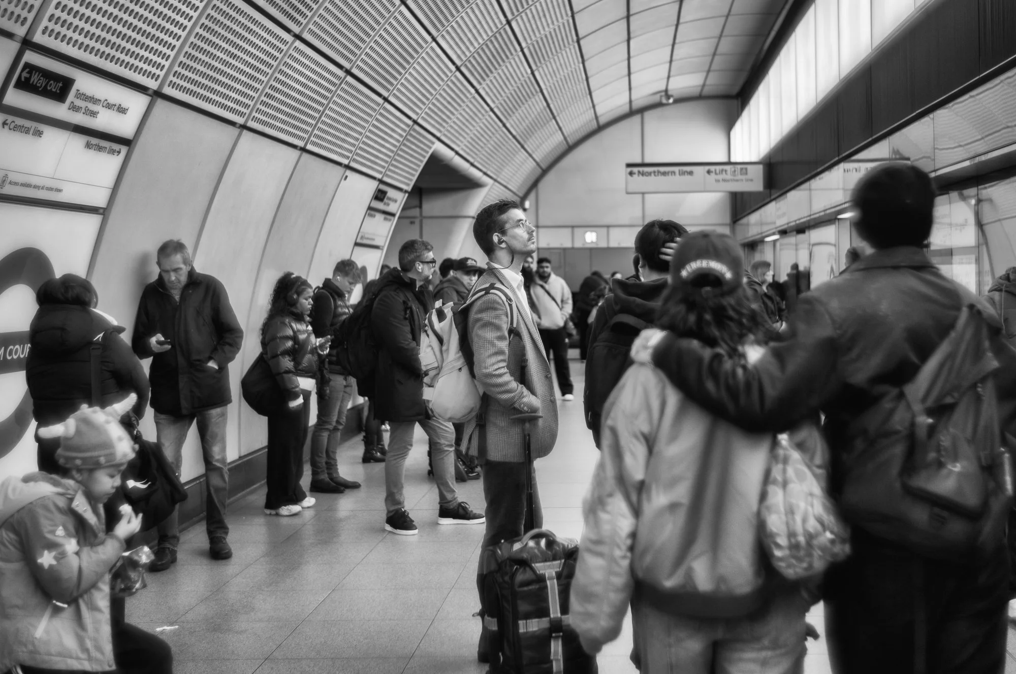 As I continued walking, my attention shifted from movement itself to the spaces that contain it. Underpasses, corridors, facades and thresholds began to frame the human presence more decisively. Architecture imposes direction and scale; it defines where we pause, where we narrow, where we emerge into light. These photographs explore that relationship — the individual set against surfaces that do not move.